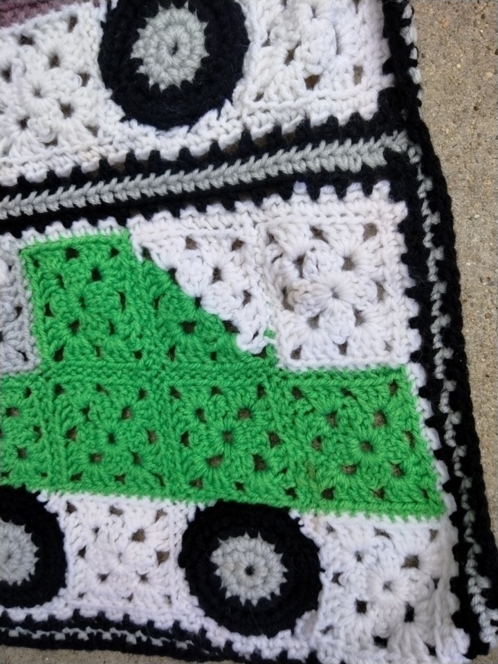 - Handmade Crochet Granny Square w/Trucks Throw 62"x 48"