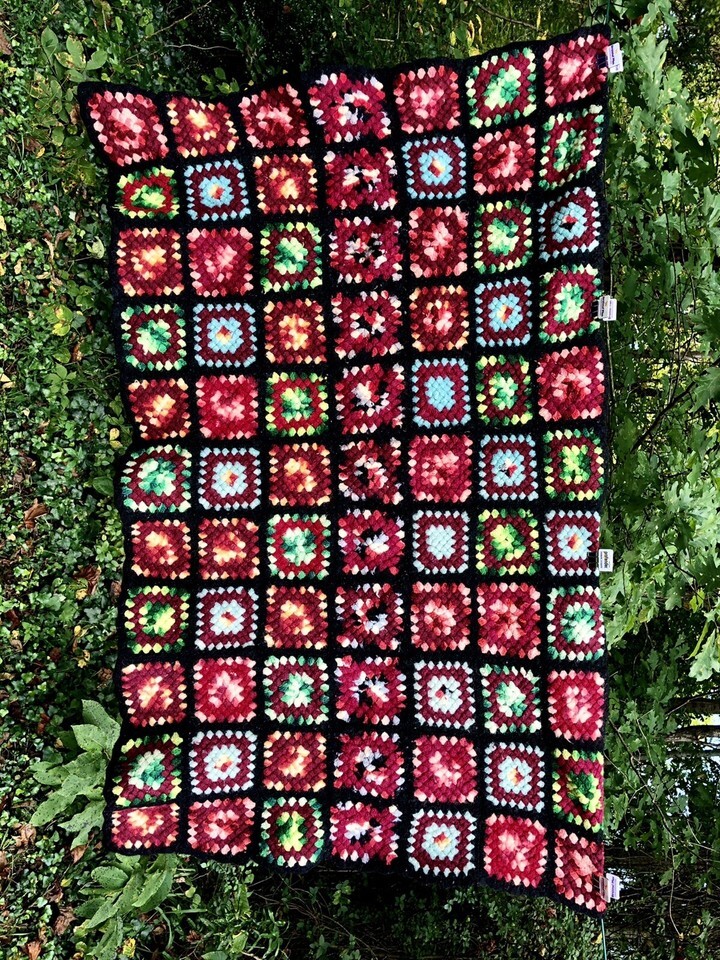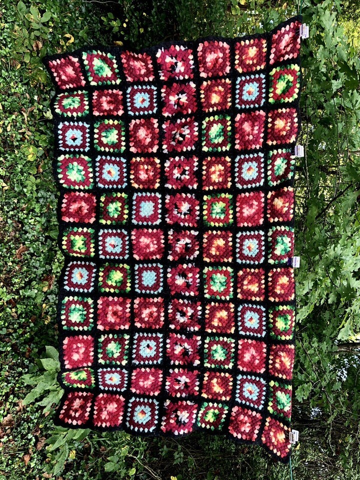 - Handmade Crocheted Afghan Throw Blanket Granny Square Small 48” X 32” Black