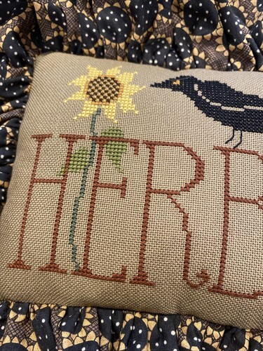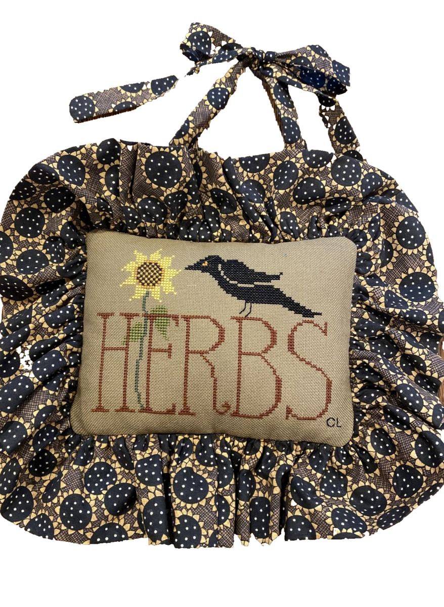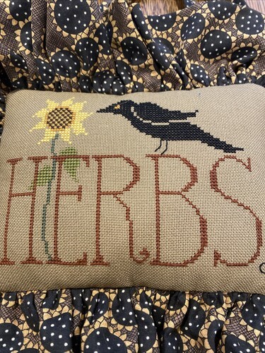 - Handmade Cross Stitch Decorative Pillow Herbs/Blackbird/Sunflowers