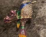 - Handmade ~ Hummingbird Pin/Brooch ~ Clear Sparkle Gemstones ~ Goldtone Jewelry