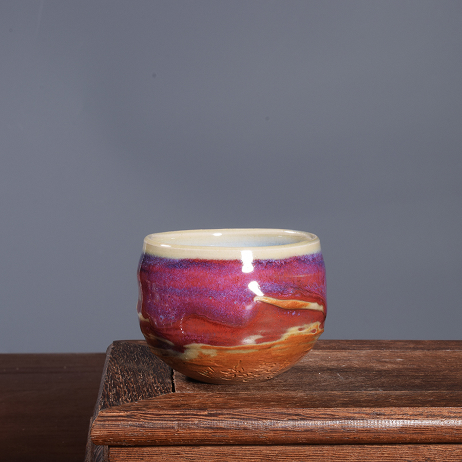 Its showstopping colors (rich purples, deep reds, warm earthy tones) come from natural kiln transformation glaze – no two cups are identical. The hues bloom spontaneously during firing (no artificial dyes!) – so your cup is 100% one-of-a-kind.