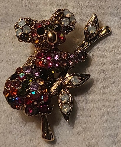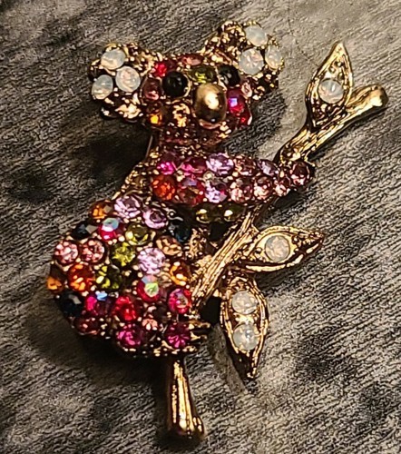 - Handmade ~ Koala Bear Pin/Brooch ~ Multicolored Gemstones ~ Goldtone Jewelry