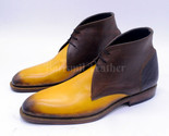 - Handmade Leather Two Tone Hand Patina Ankle Boots Leather Dress Boots for Men
