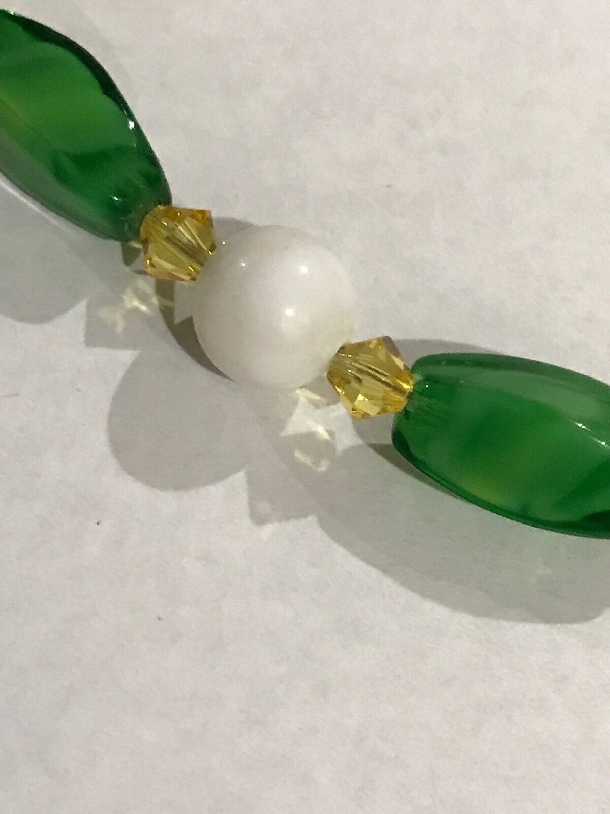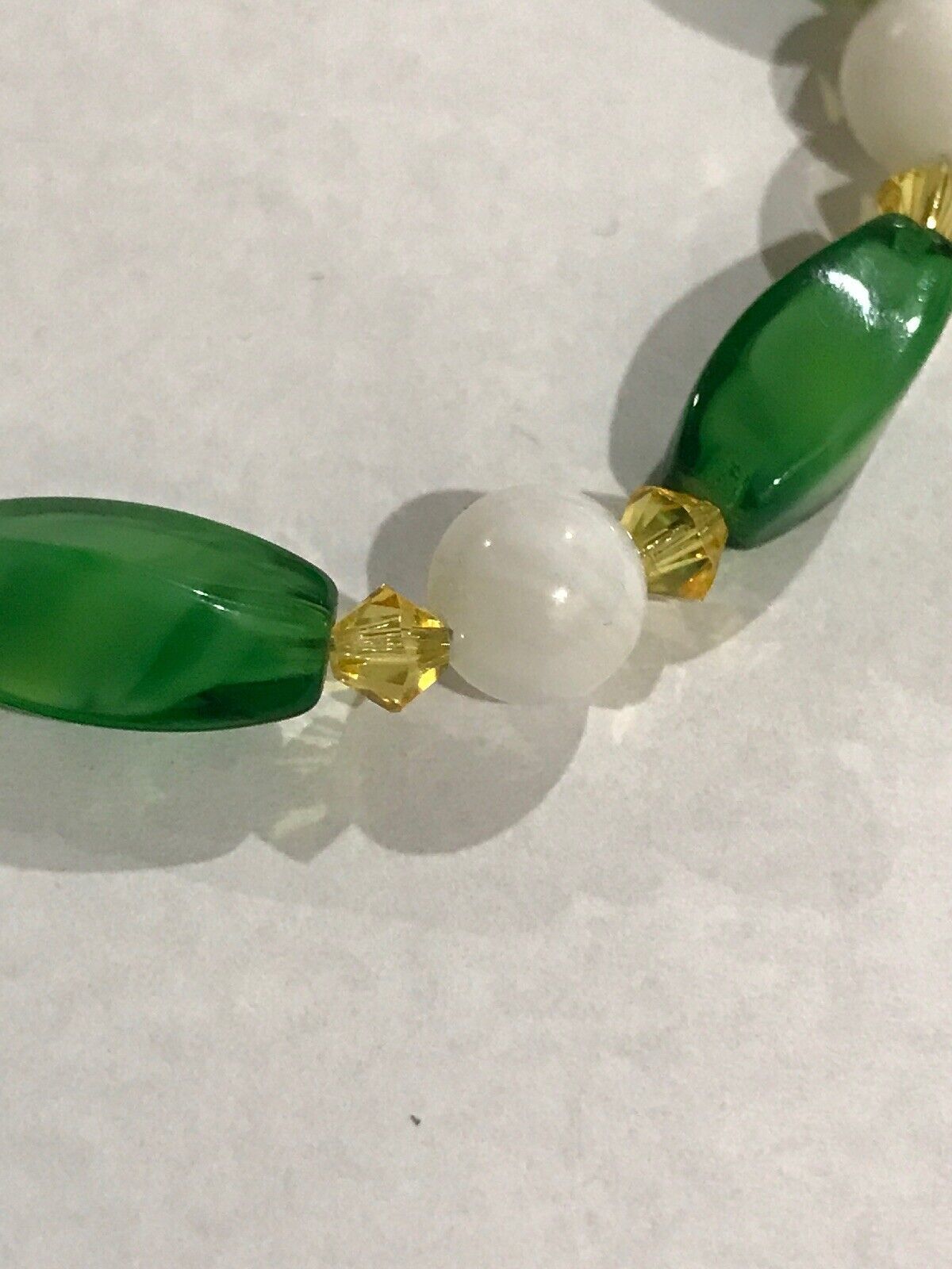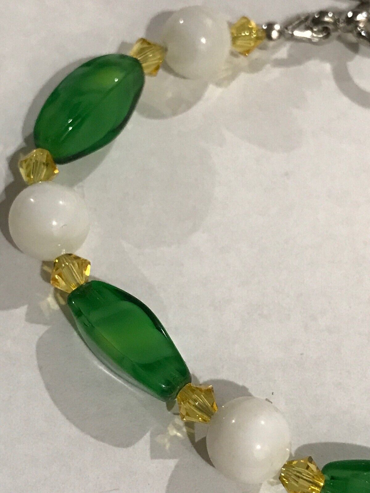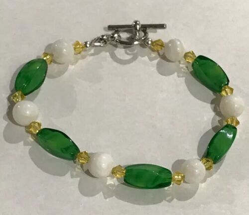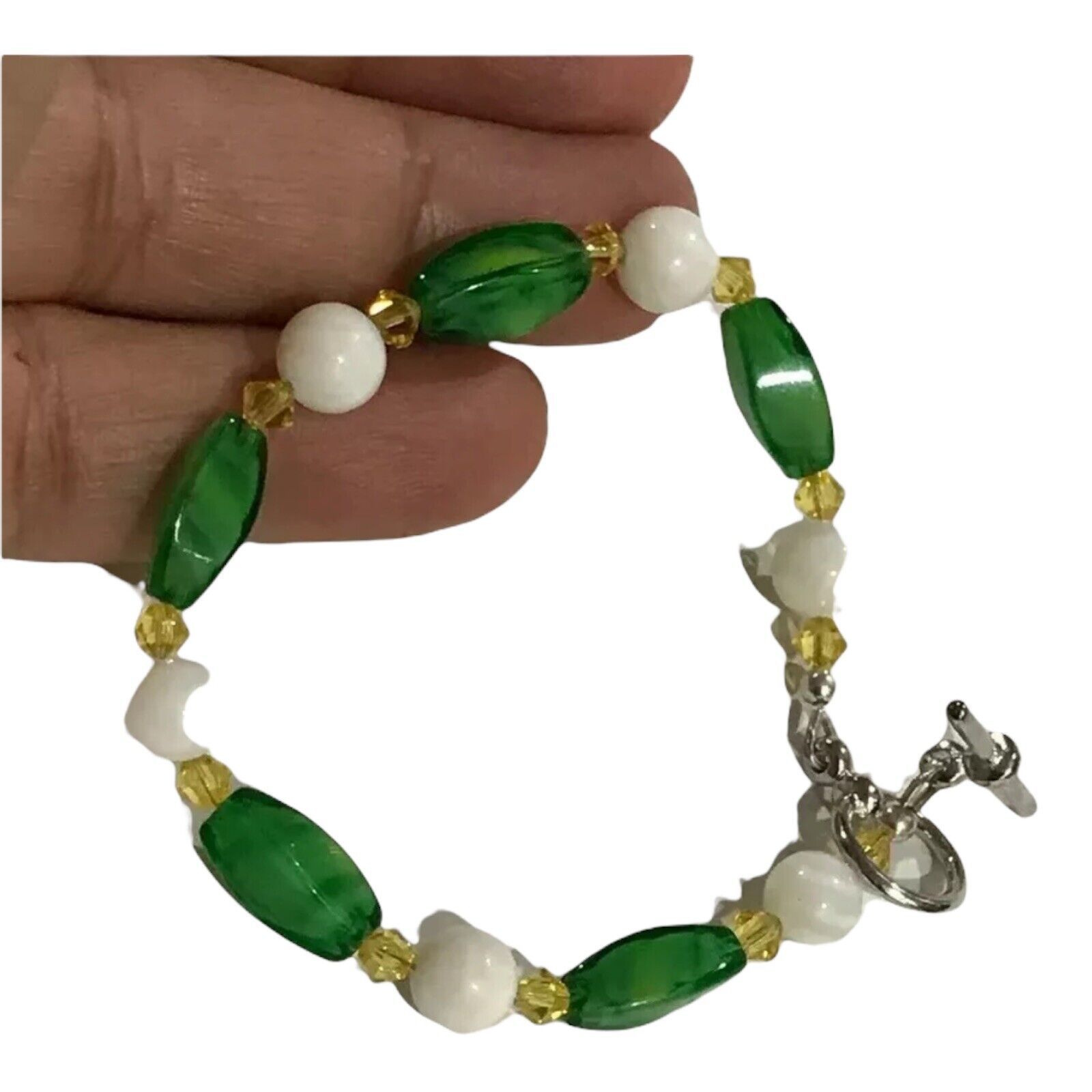 - Handmade Milky & Green Glass Art Beads Bracelet with Toggle Clasp 7.25” Long