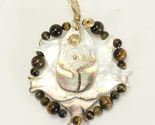 - Handmade Mother of Pearl Pendant with Rose Center & Copper Wire 1.9" W x 2" H