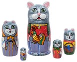 - Handmade Painted Cat Peasant Family Nesting Doll 5pc 5" 100% Natural Linden Wood