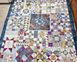 The blue and tan fabrics in a block pattern make this quilt a work of art.