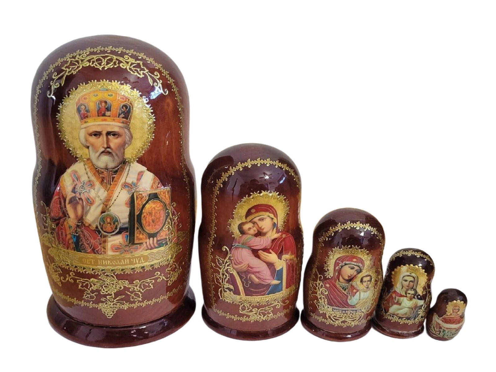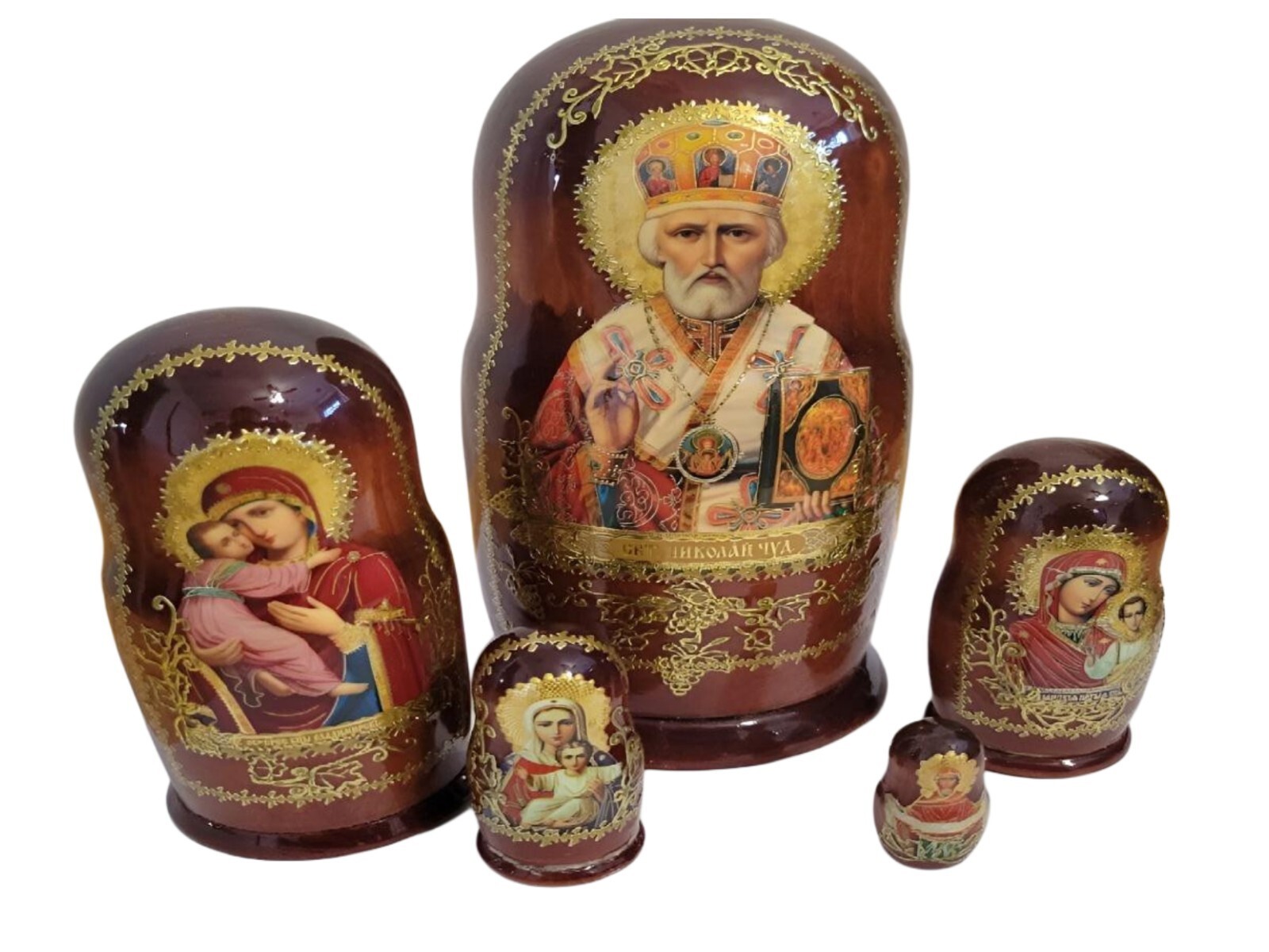 - Handmade Russian Nesting Doll Orthodox Icon Religious set of St Nicholas Etc 7"