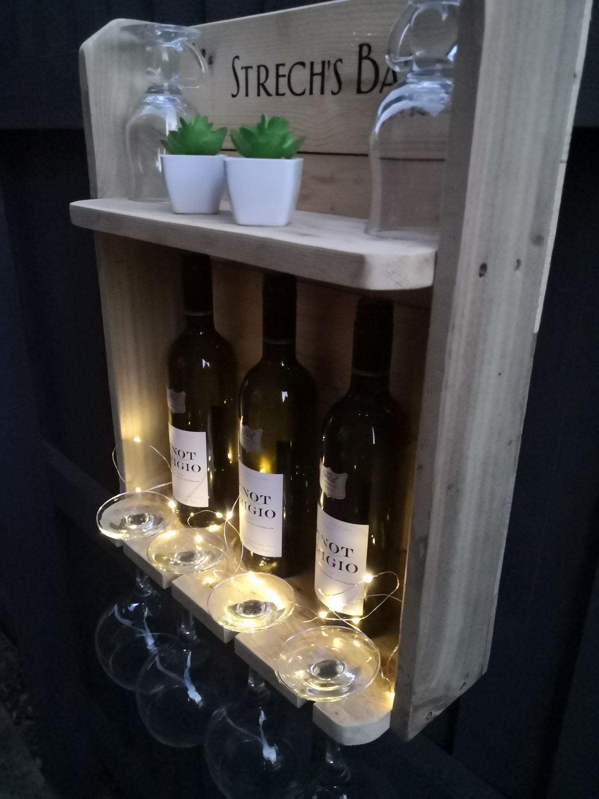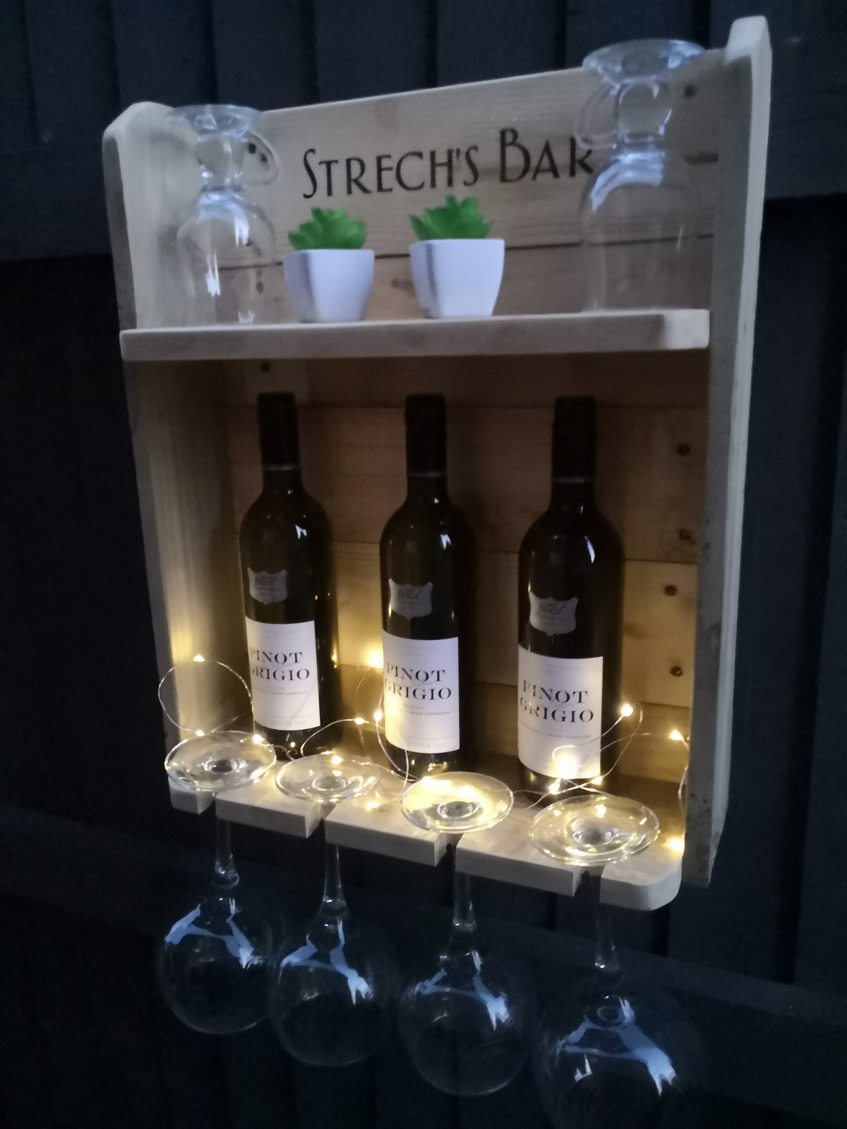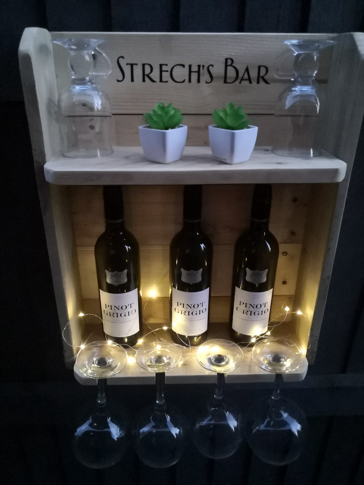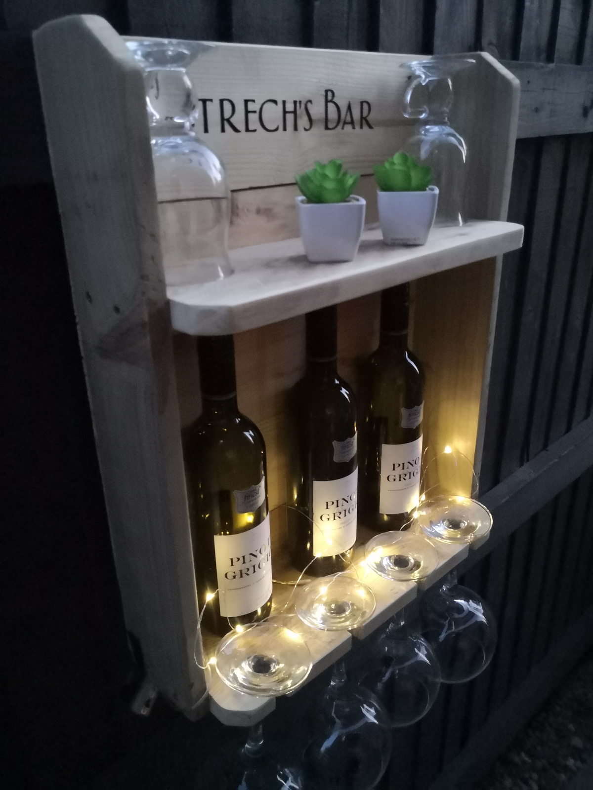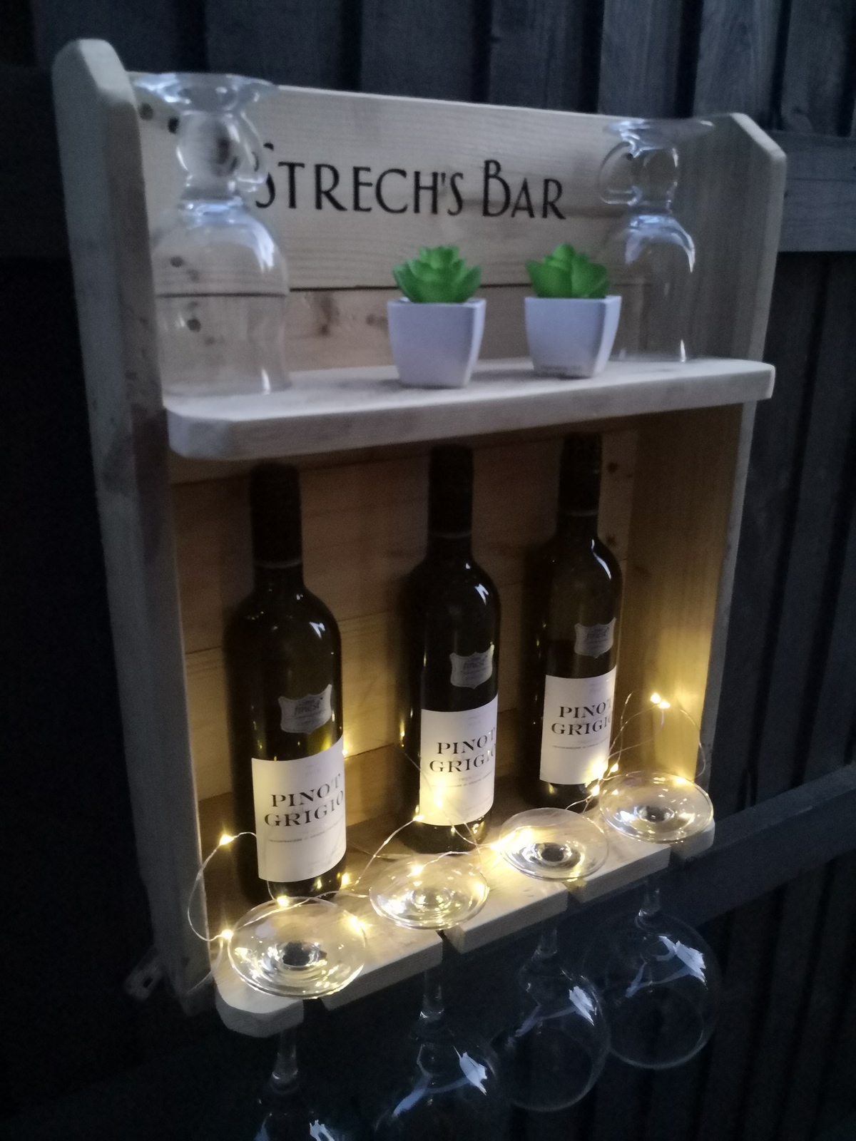 - Handmade Rustic Wall-Mounted Wine Bar – Personalised Drinks Shelf