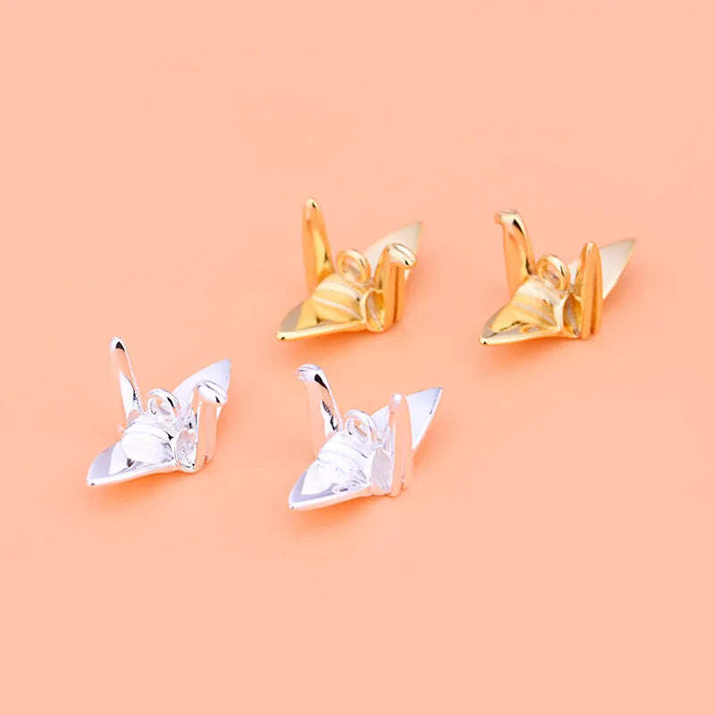 - Handmade S925 Pure Silver DIY Jewelry Accessories Crane Pendant Earrings Craft M