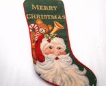 Handmade Stocking Merry Christmas Santa Needlepoint embroidery green teddy bear