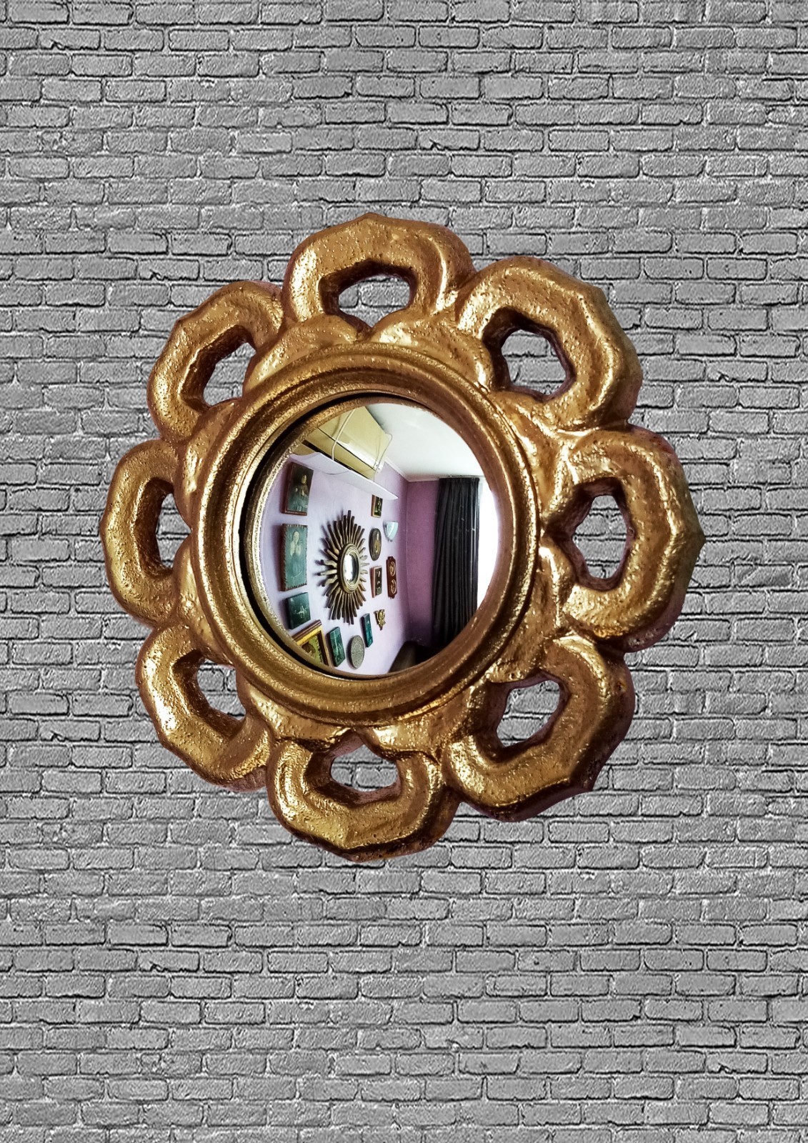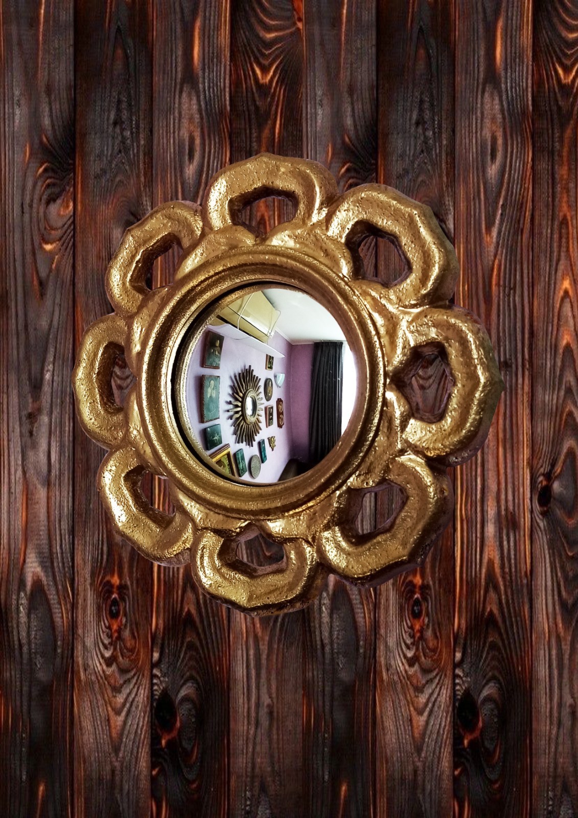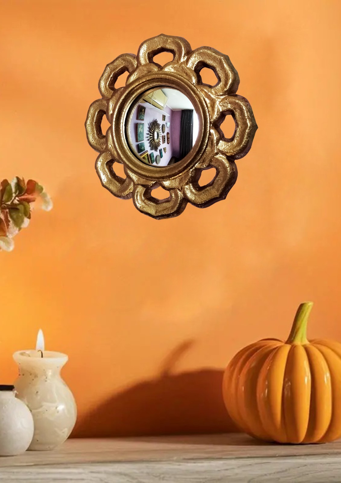 Handmade Witch’s Eye Resin Wall Mirror – Gold Floral Frame, Mystical Decor, Hand