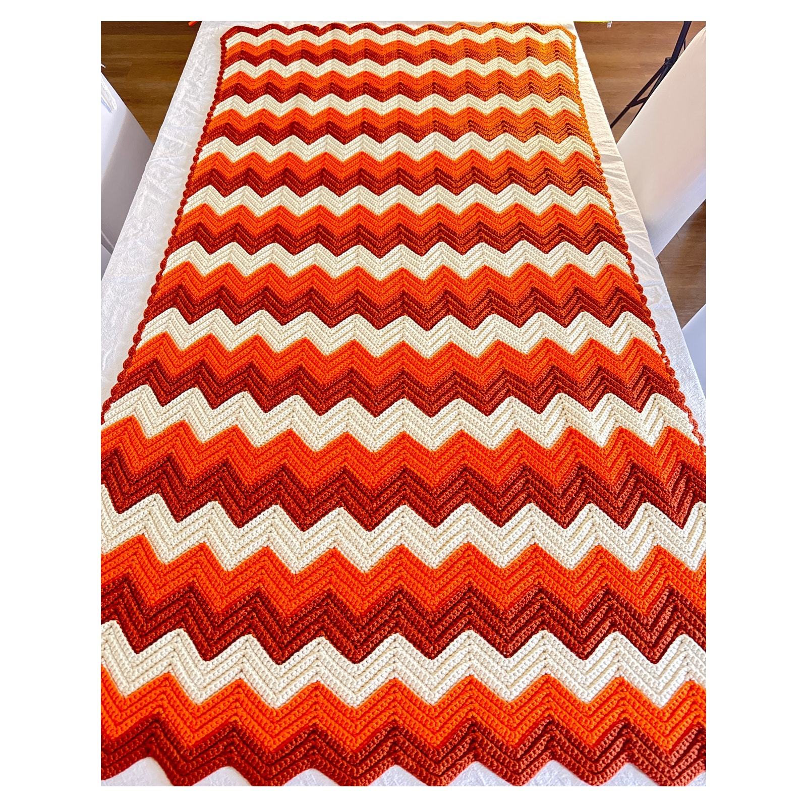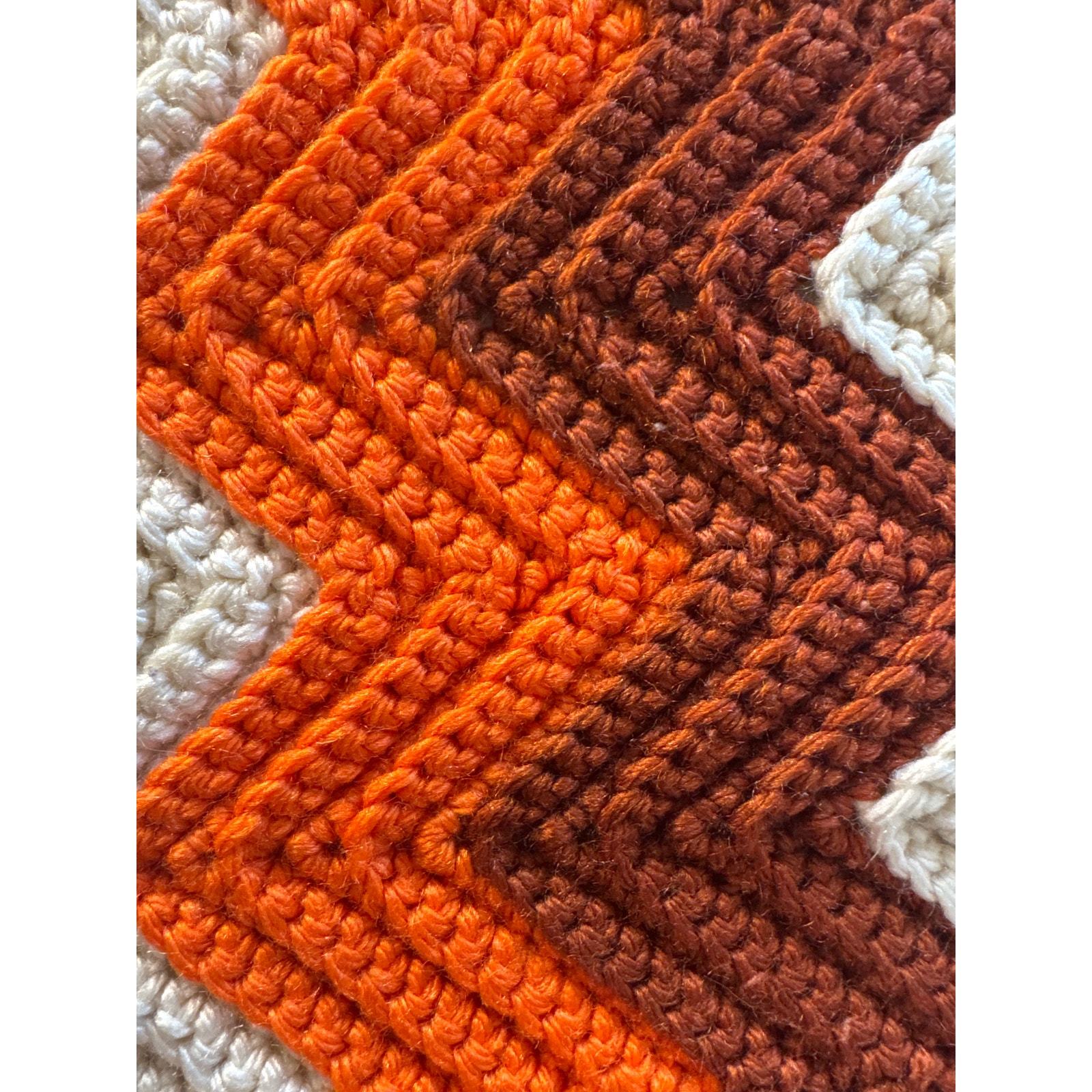 - Handmade Zigzag Crochet Afghan Orange and Cream Blanket