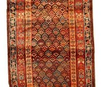 Antique hand made Kurdish runner in traditional geometric design all over the chocolate brown field. The rug is from the end of 19th century in original good condition.