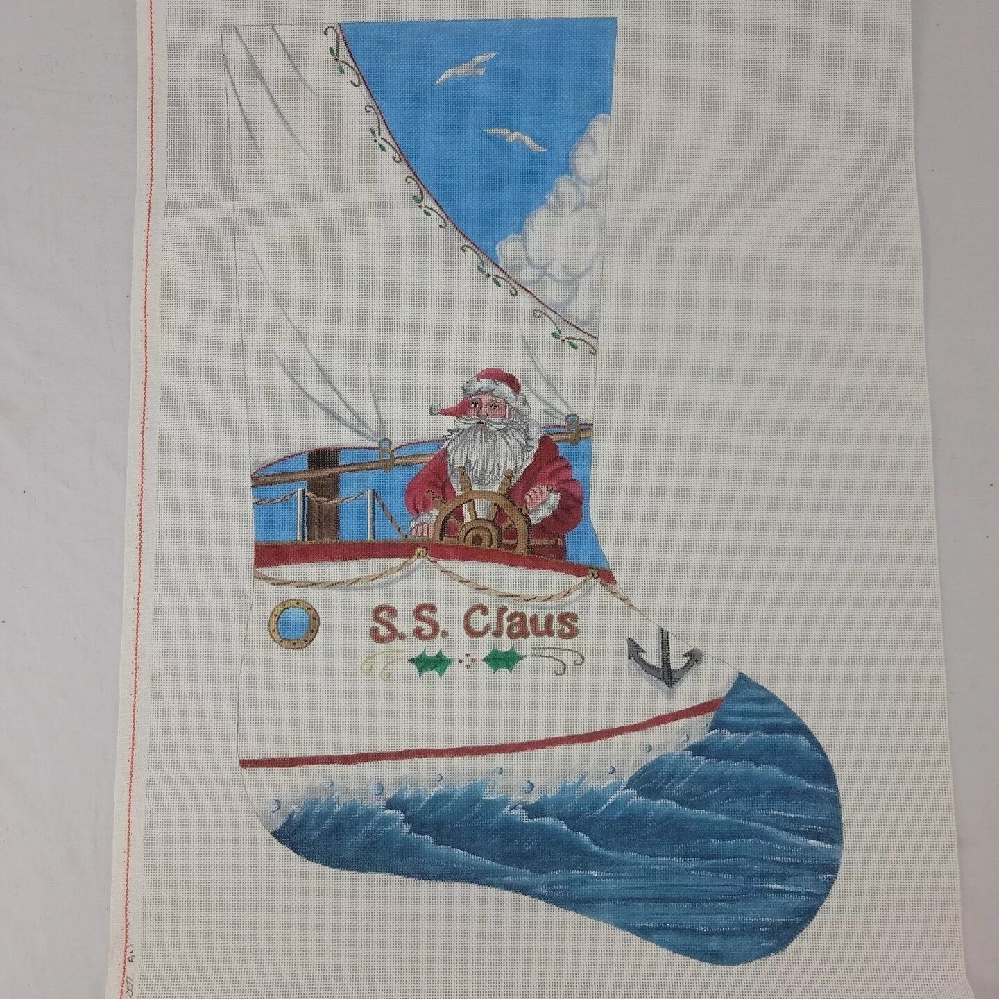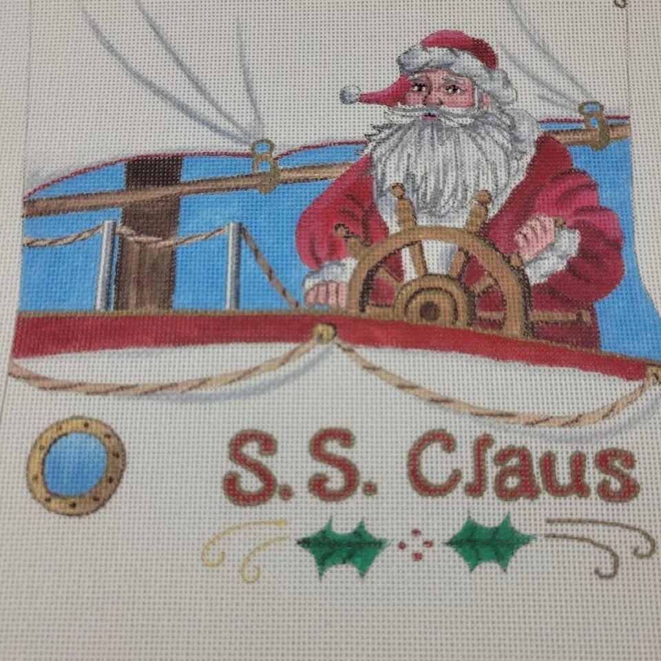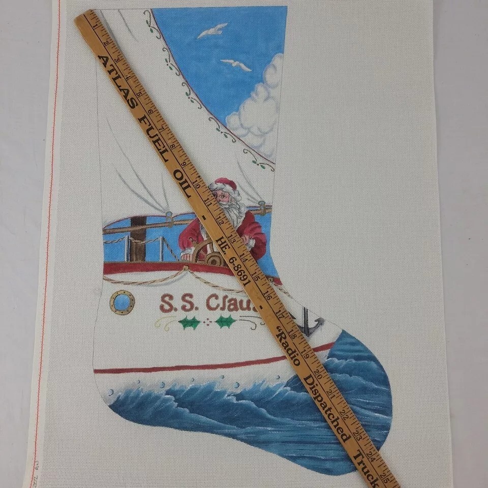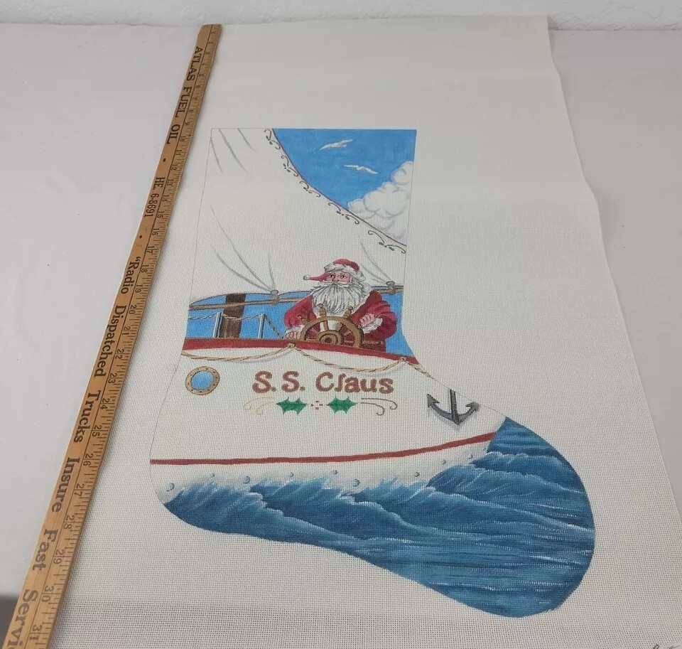 - Handpainted Needlepoint Canvas Nautical Santa XMAS Stocking LIZ Susan Robert 24"