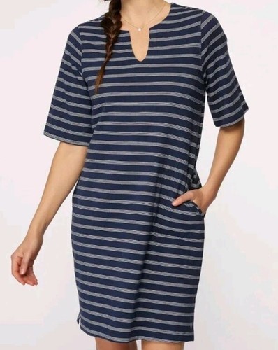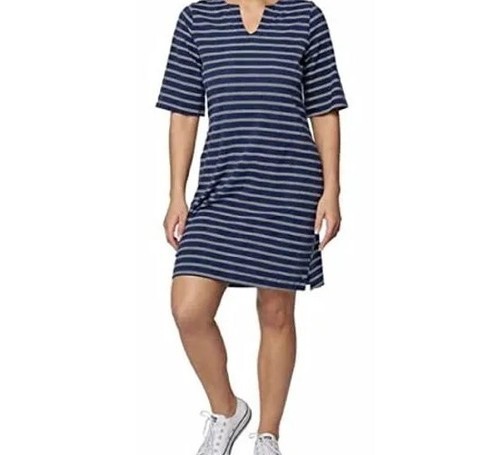 - HANG TEN ~ Women's Large ~ NAVY STRIPED ~ Sun Dress ~ UPF 50+ Moisture Wicking