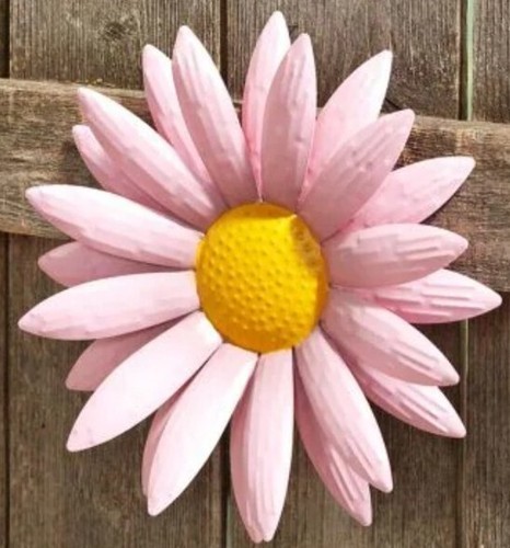 - Hanging ~ Detailed ~ Metal Wall Flower ~ Door Hanger ~ 12" Diameter ~ PINK DAISY