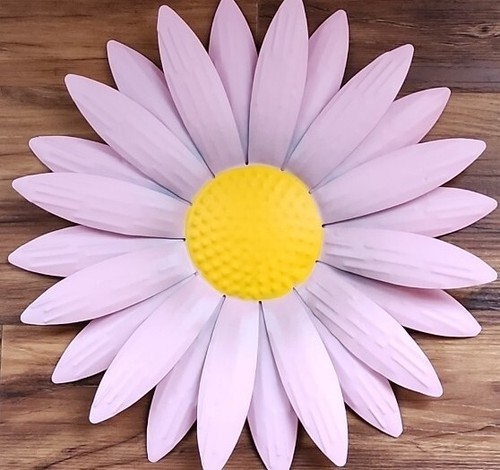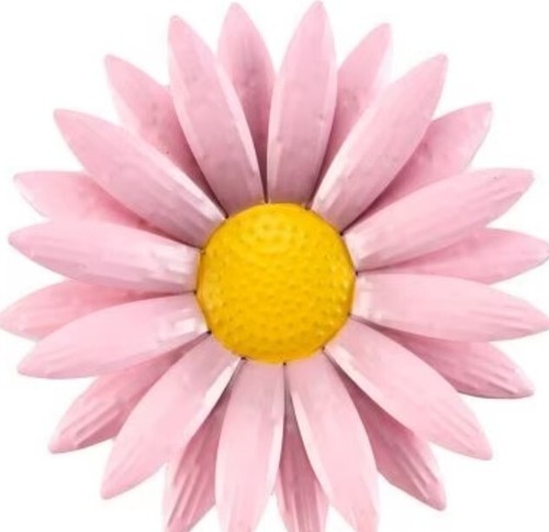 Hanging ~ Detailed ~ Metal Wall Flower ~ Door Hanger ~ 12" Diameter ~ PINK DAISY