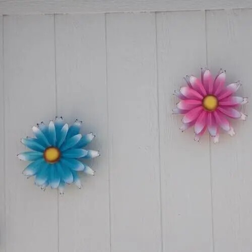 Hanging ~ Detailed ~ Metal Wall SPINNING Flower ~ 2 Layers ~ 12" Dia. ~ BLUE