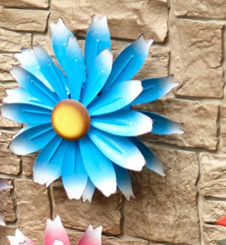 - Hanging ~ Detailed ~ Metal Wall SPINNING Flower ~ 2 Layers ~ 12" Dia. ~ BLUE