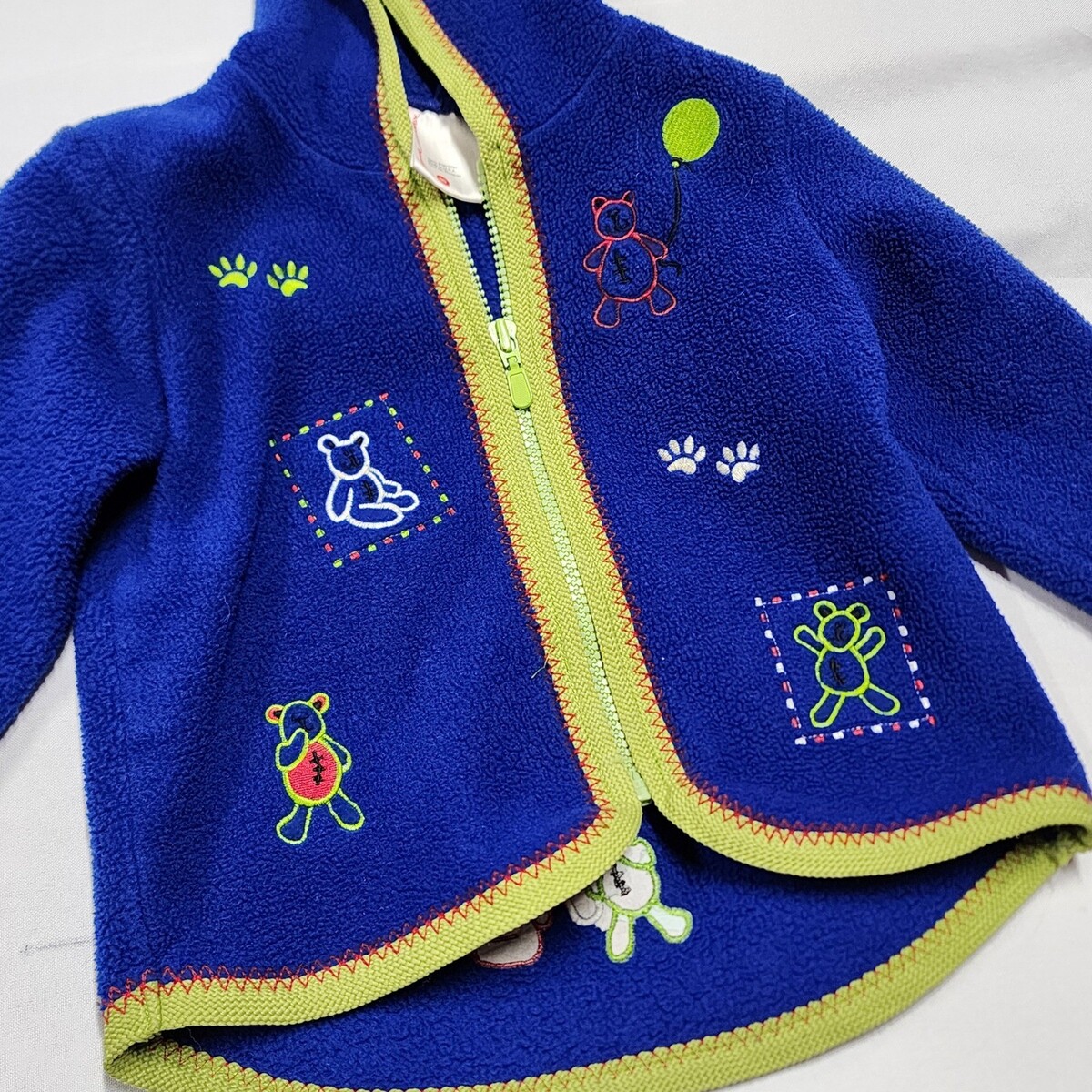 - Hanna Andersson Fleece Hooded Jacket Blue Teddy Bear Embroidery Size 90 Vintage