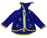 Keywords: fleece jacket, hooded, teddy bear, embroidered, kids outerwear, toddler jacket, childrens clothing, winter wear, cozy, playwear, bear print, bright blue, zip up