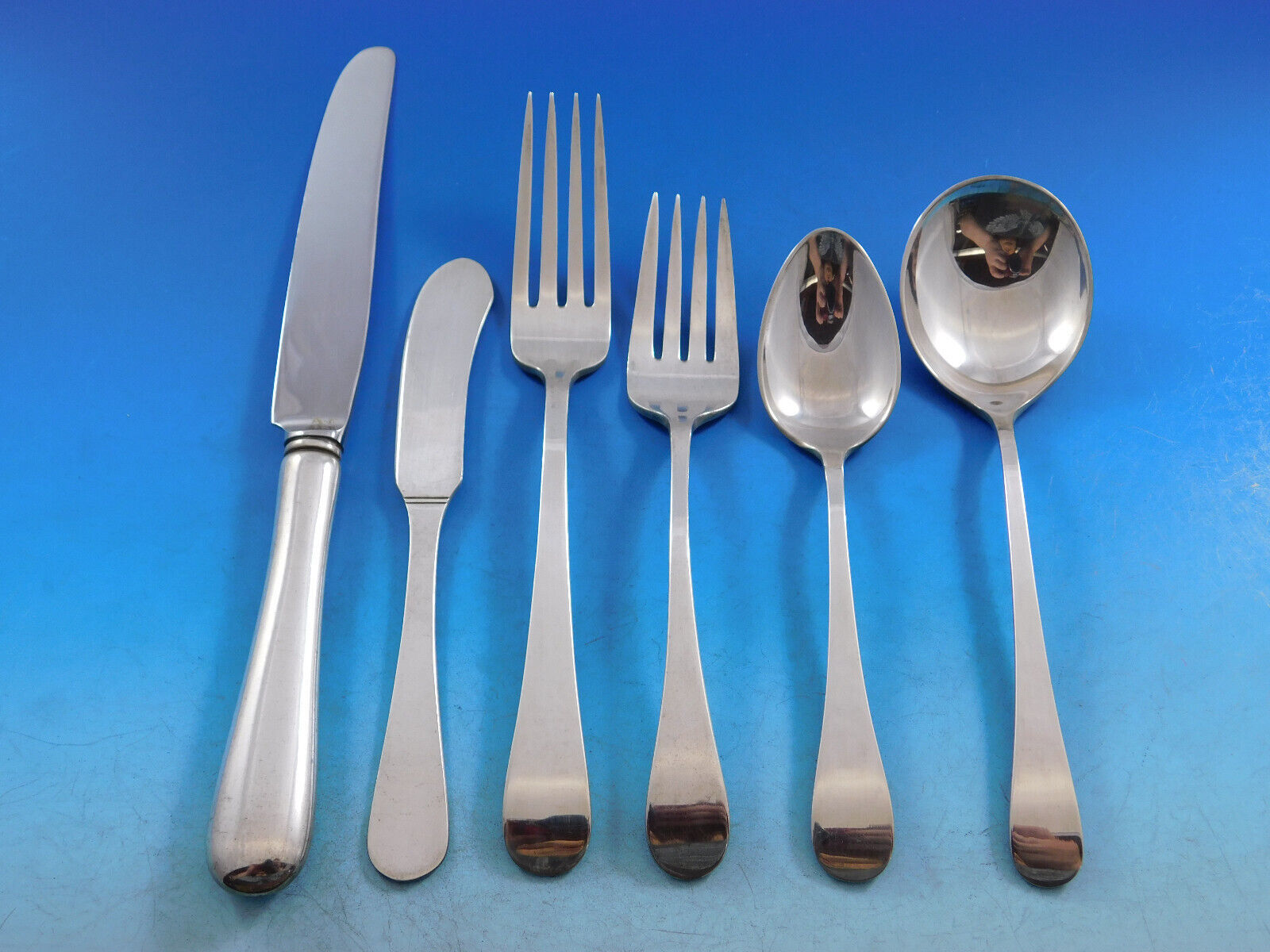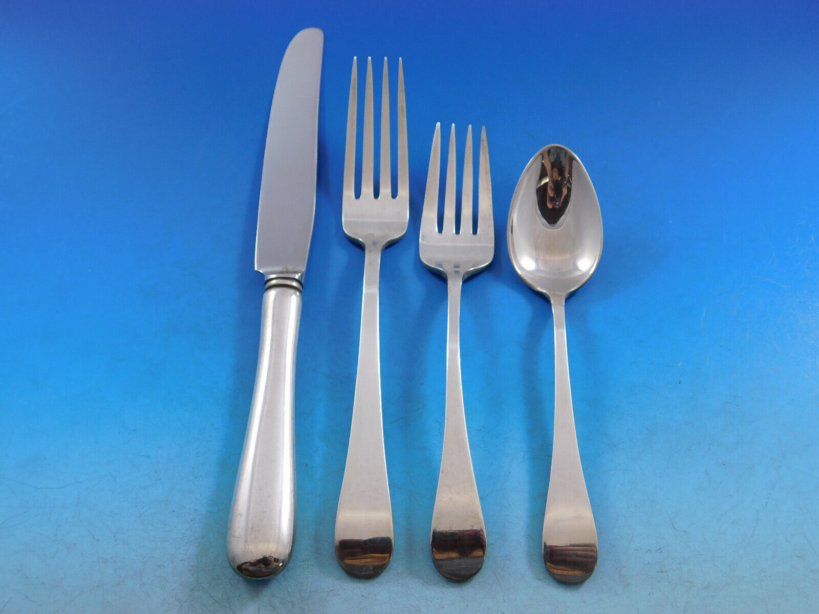 Excellent condition, no monograms. This set will be beautifully professionally polished prior to shipping. Date marks vary. Exquisite!
