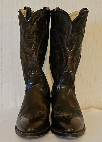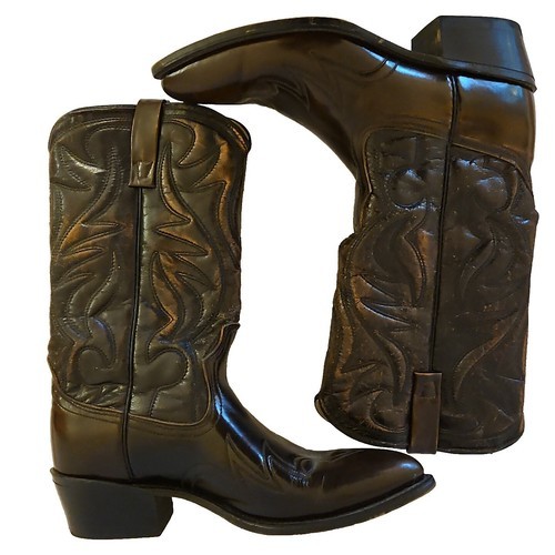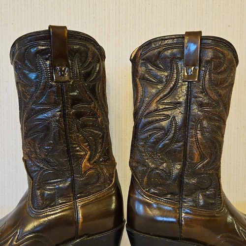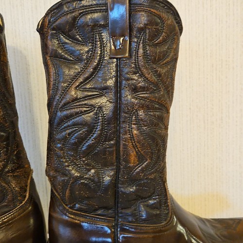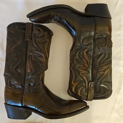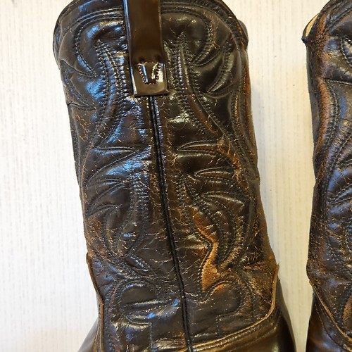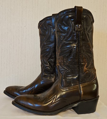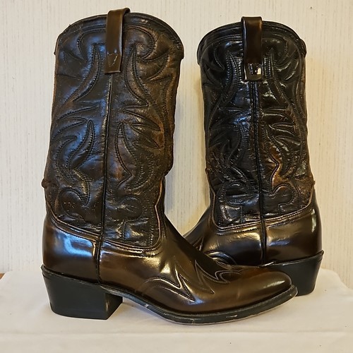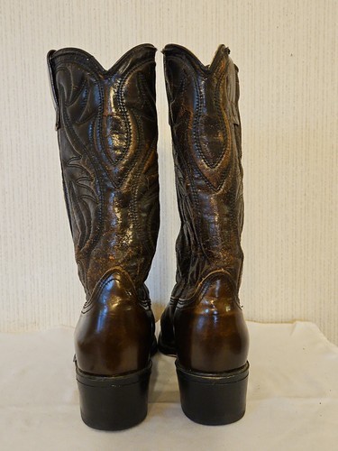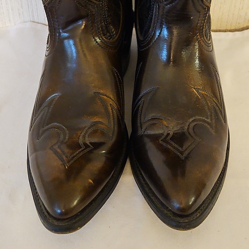 Vintage HANOVER Western Cowboy Boots Shiny Brown Distressed Leather 47667