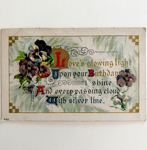 - Happy Birthday Greeting Postcard 1900s Victorian Embossed Pansies Flowers PCBG3D
