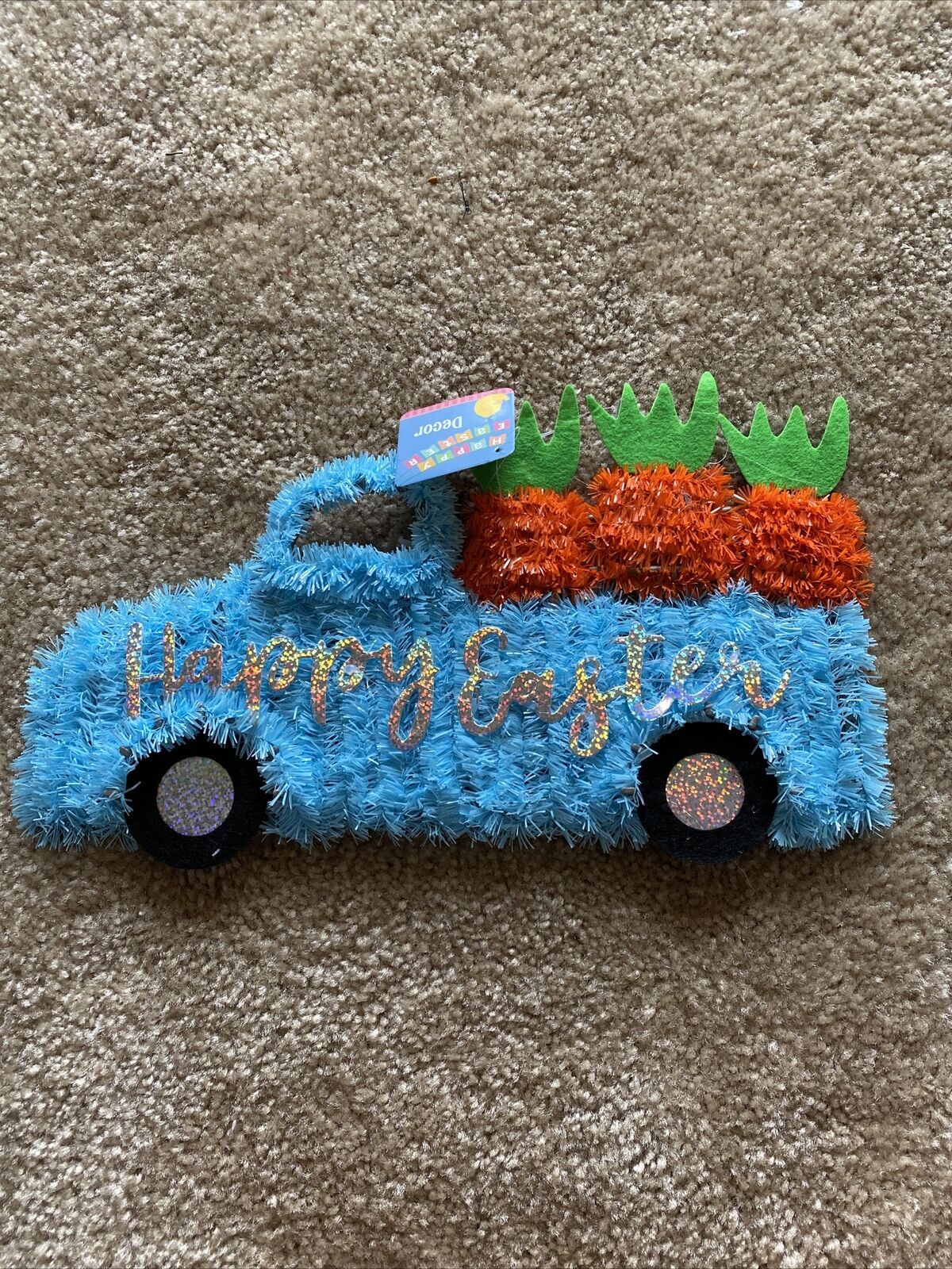 - HAPPY EASTER Blue TRUCK SIGN Wall Door Hanger-Brand New-SHIPS SAME BUSINESS DAY