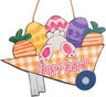 Happy Easter Wooden Hanging Sign Easter Colorful Carrot Bunny Sign Door.