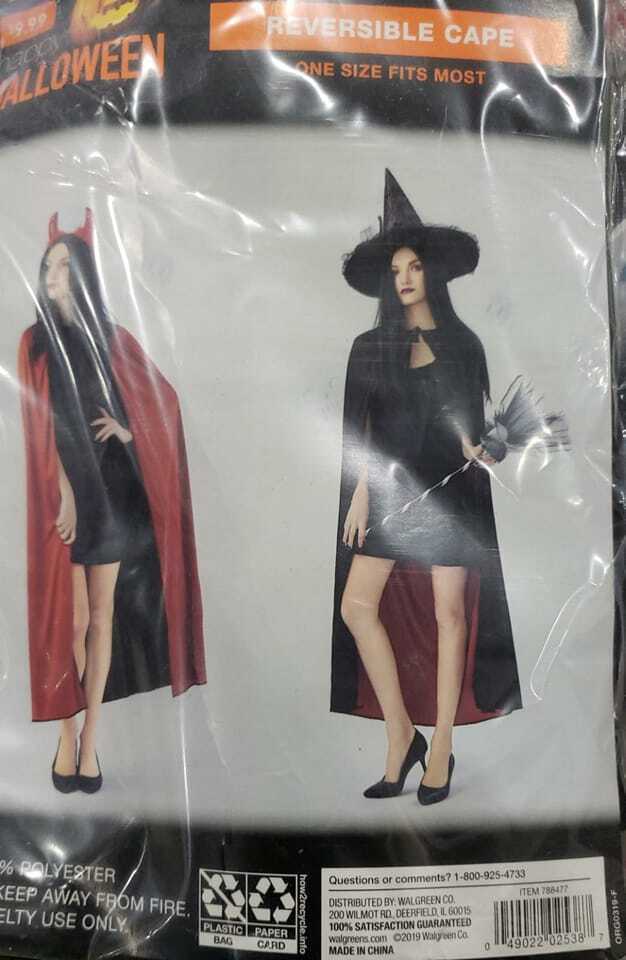 - Happy Halloween Reversible Cape One Size Fits Most Black