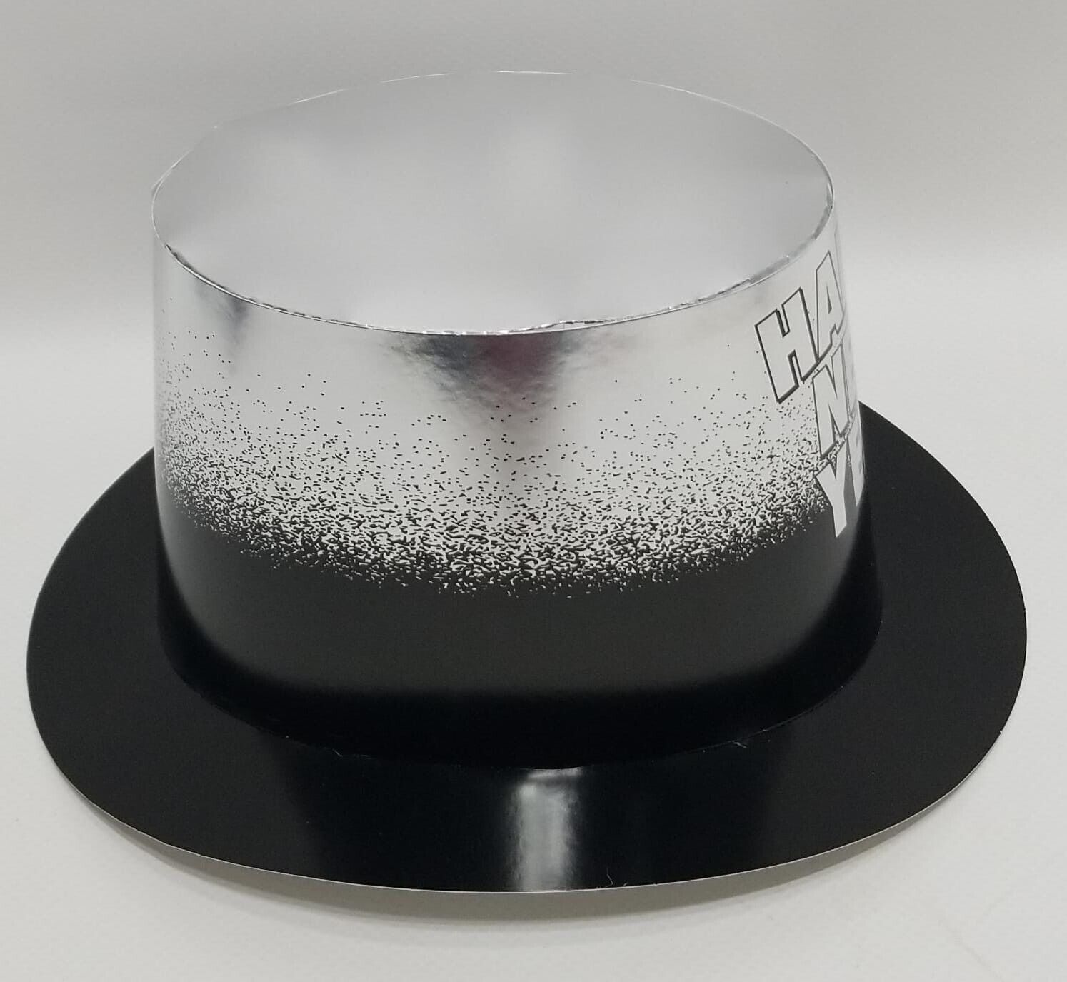 - Happy New Years Paper Top Hat, Silver/Black, Age 14+