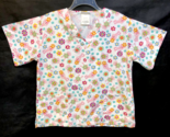 - Happy Scrubs Womens Shirt Size Medium White Monkey Floral Nurse Vet Tech Xray