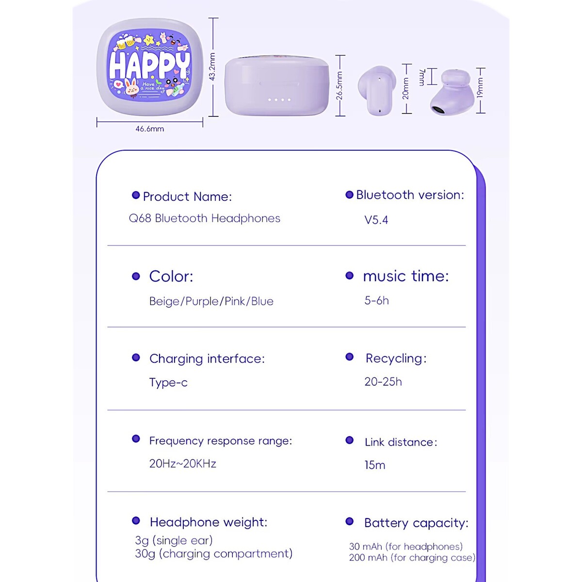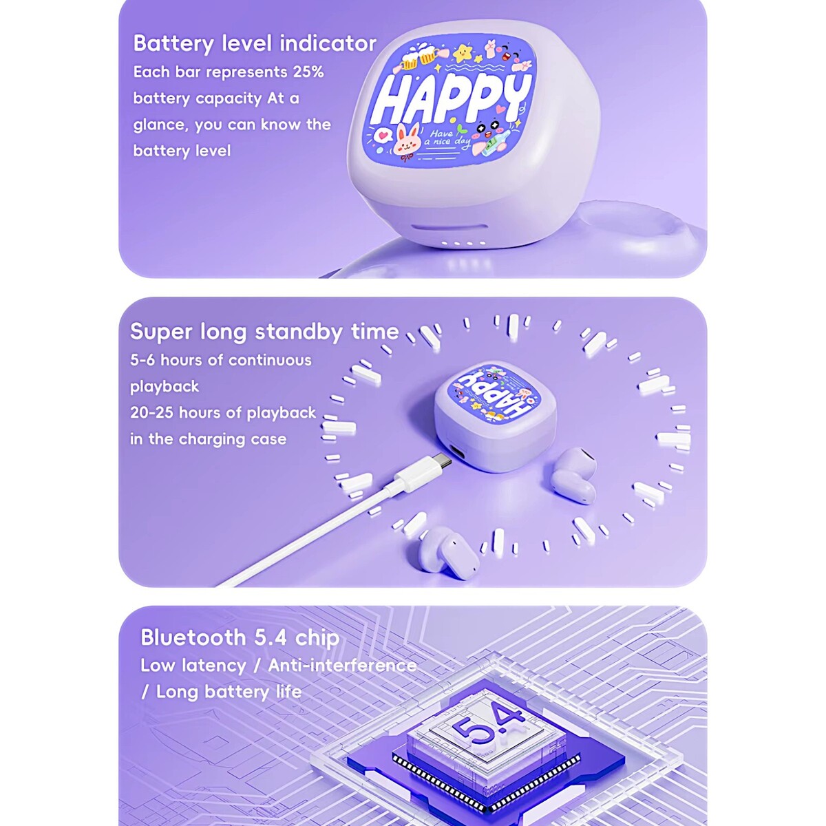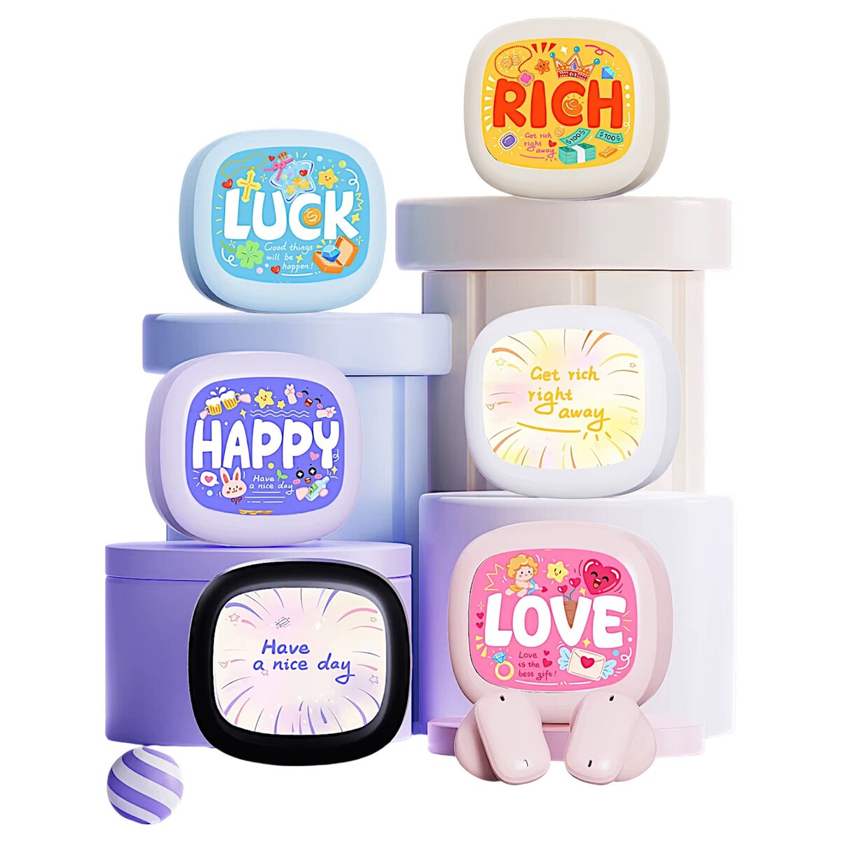 Happy Wireless Bluetooth Earphones Changeable Panel Digital Display Gift Box Set
