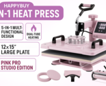 [5 in 1 Heat Press] Happybuy 5 in 1 Heat Press Machine, 12 x 15 inch, Digital Precise Control, 360 Swing Away T-Shirt Pressing, with 30 oz Tumbler Press, for T-Shirts/Mugs/Hats/Plates, Pink