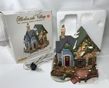 Neato Village piece, hand painted, and made to fit right in with all the other village pieces. Lights up as it should. This house is on the harbor side of the water, with a captain Smith Mail Box at the water. Comes with original box/packing.