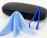 Hard Clam Shell Eyeglasses Glasses Black Case w/ Blue Cleaning Cloth & Brush