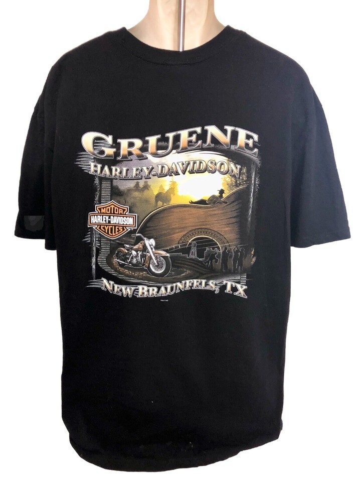 - Harley Davidson Gruene Motorcycle Braunfels Texas Black T-Shirt Size XL 2014