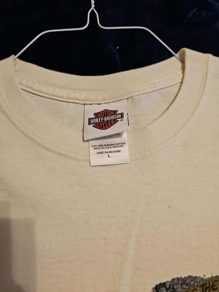 The Harley Davidson I Rode The Dragon T Shirt in size Large with a tan color is a graphic print long sleeve shirt featuring the Harley-Davidson logo.