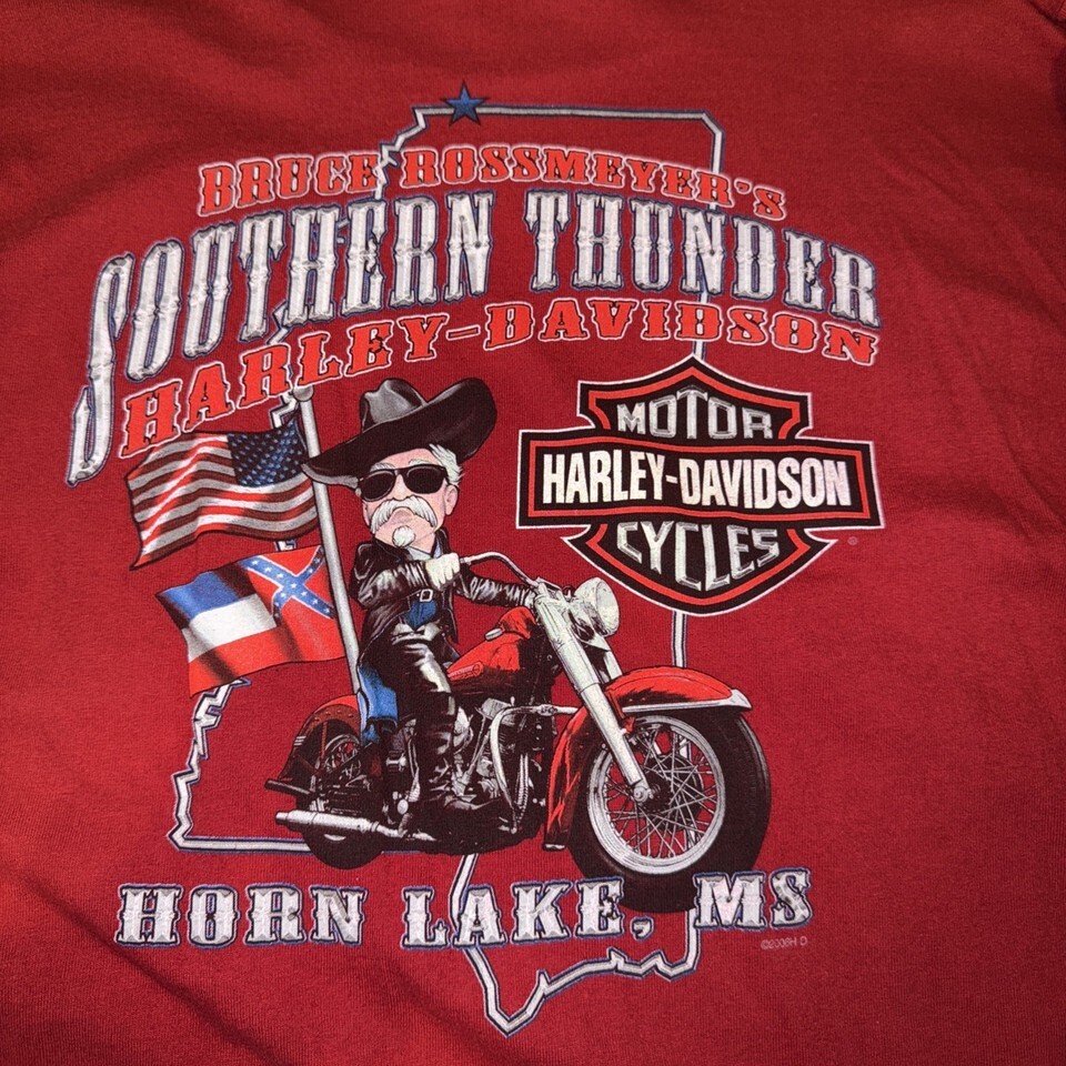 - Harley Davidson L T Shirt Southern Thunder Horn Lake MS Red Long Sleeve