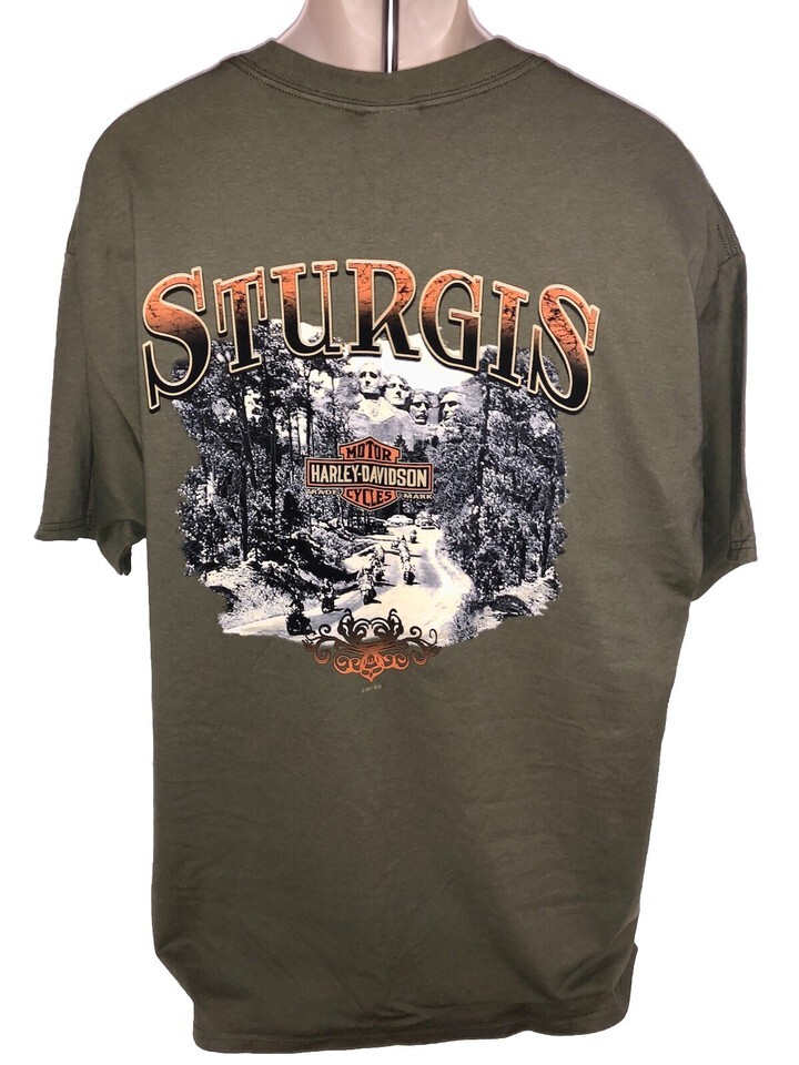 - HARLEY DAVIDSON Sturgis T-shirt 2011 XL Green South Dakota Mount Rushmore NEW