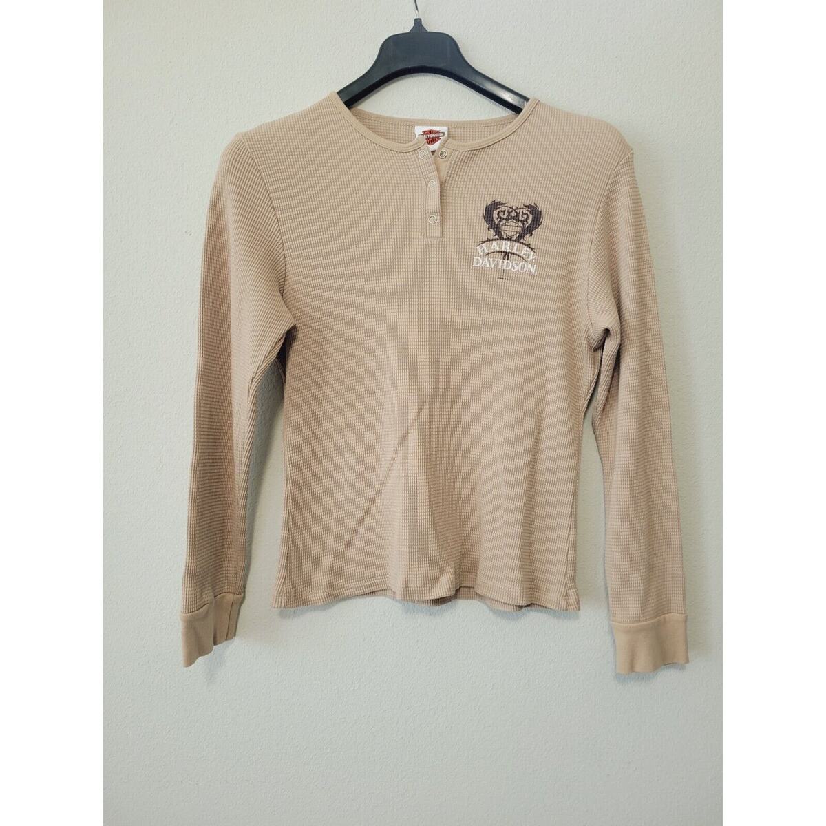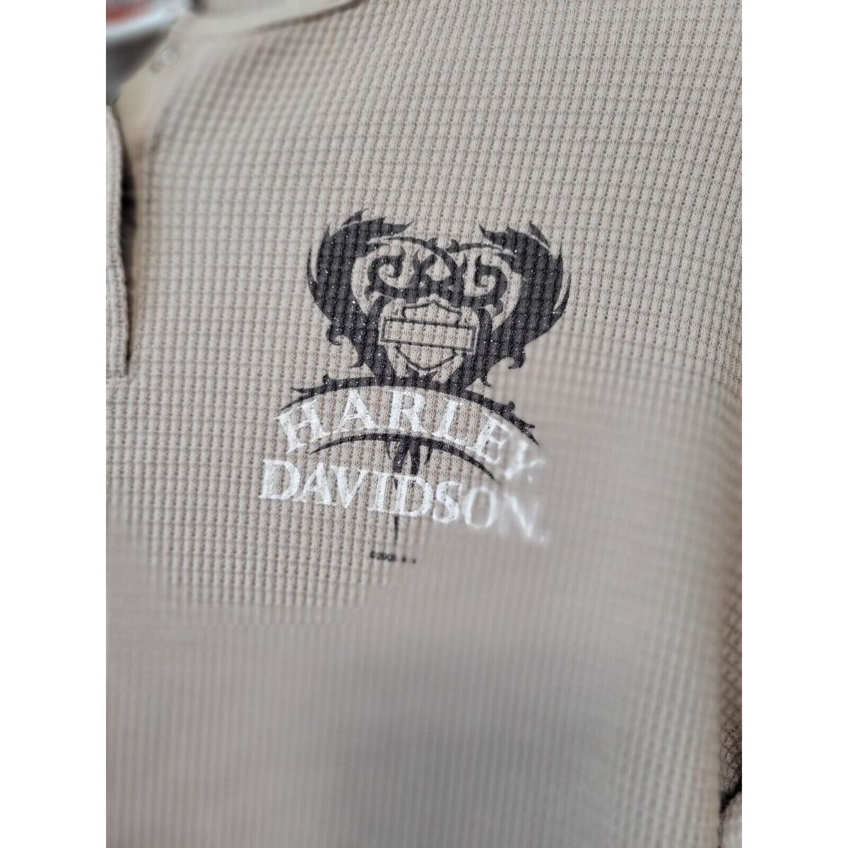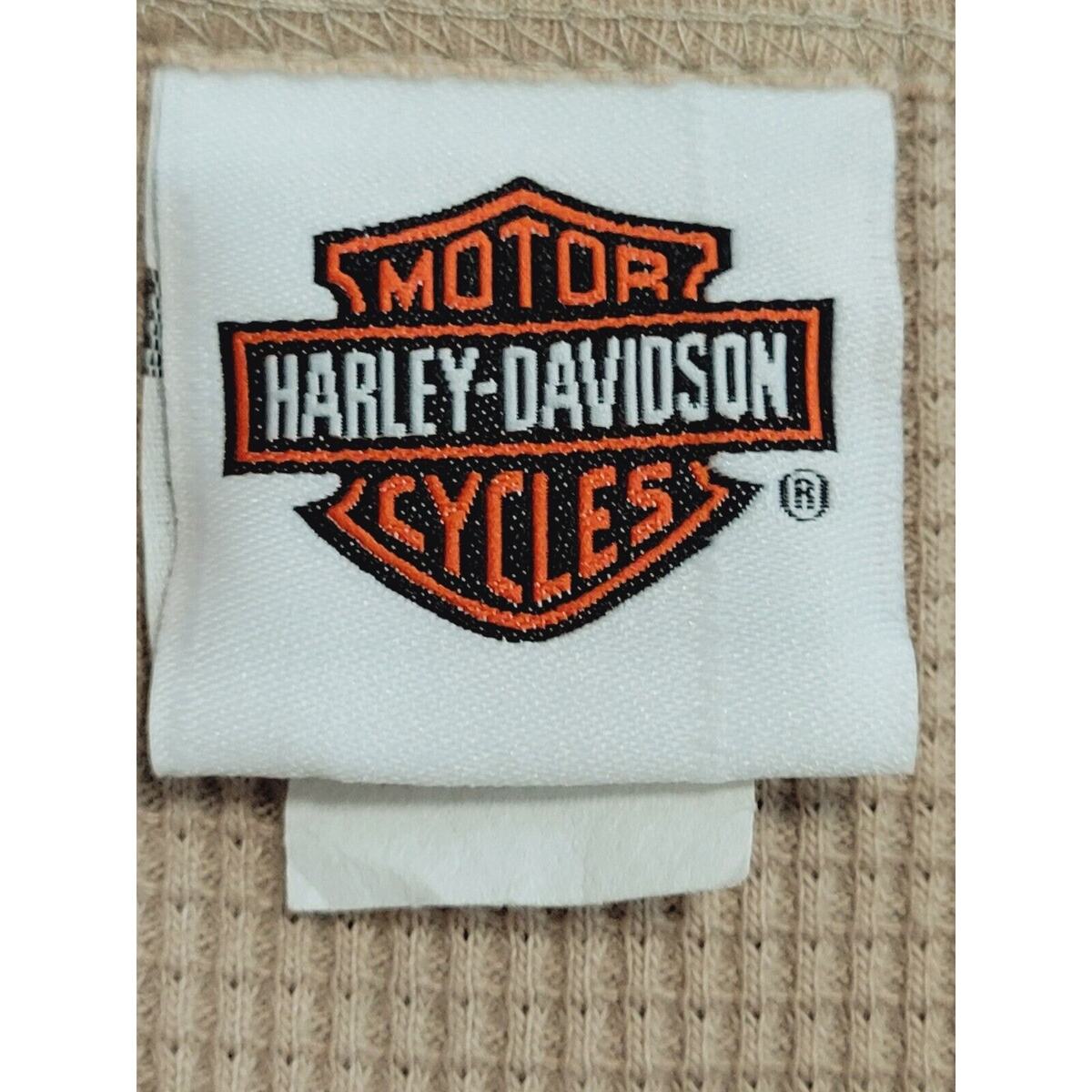 - Harley Davidson Waffle Knit Henley Snap Shirt Womens L Beige USA Vtg Long Sleeve