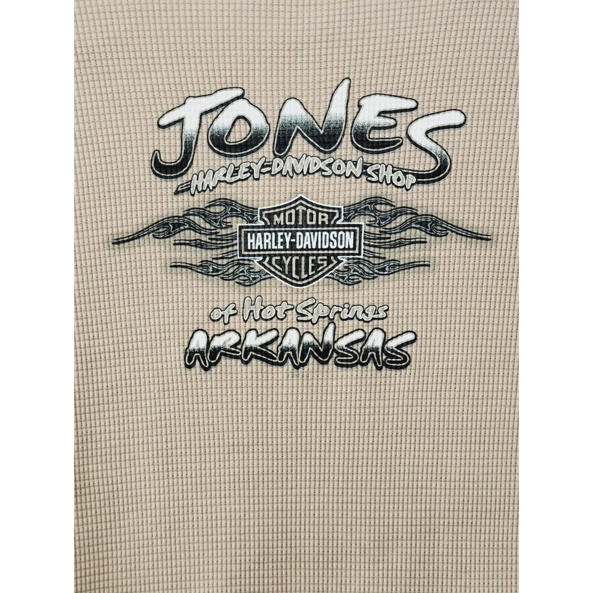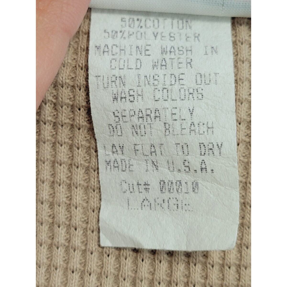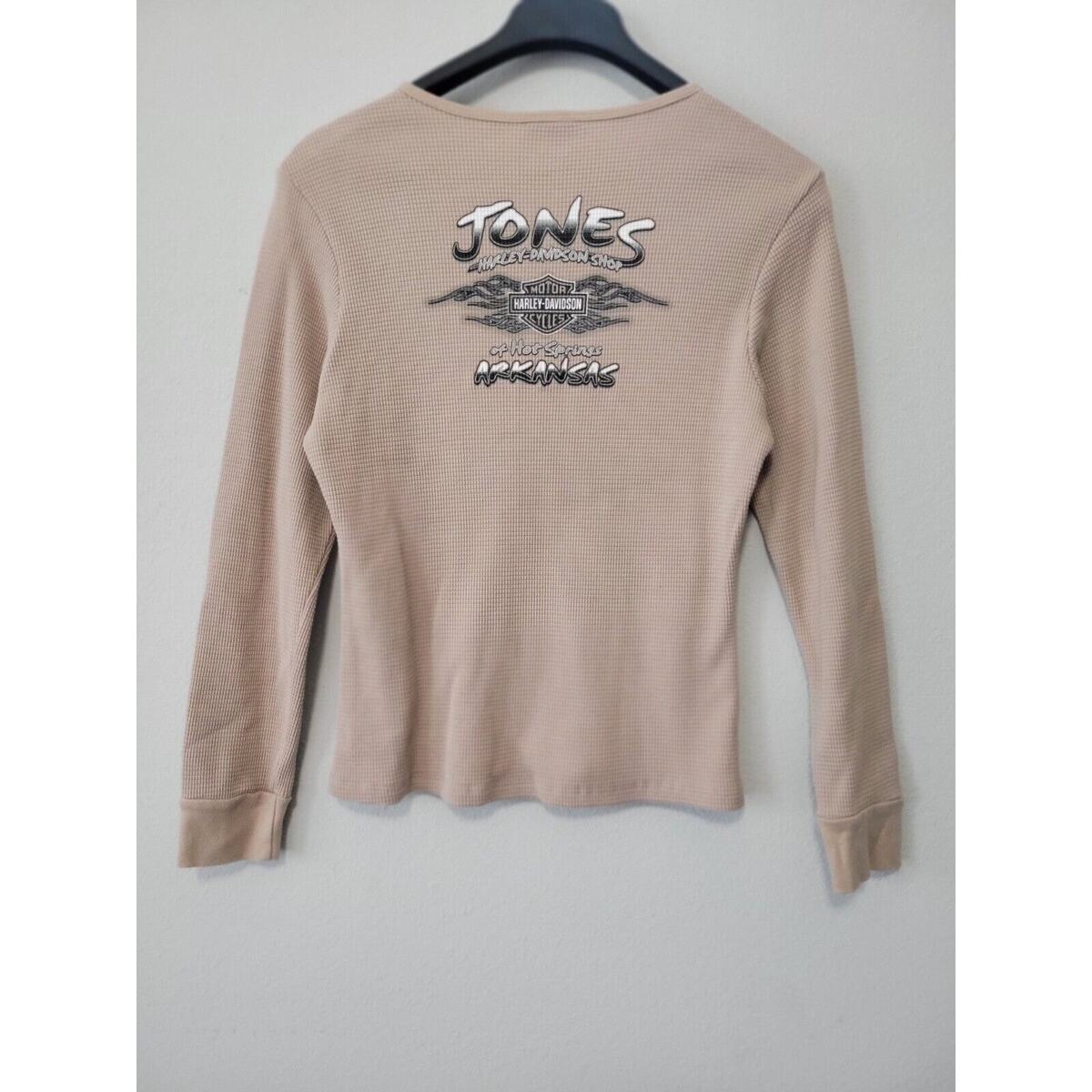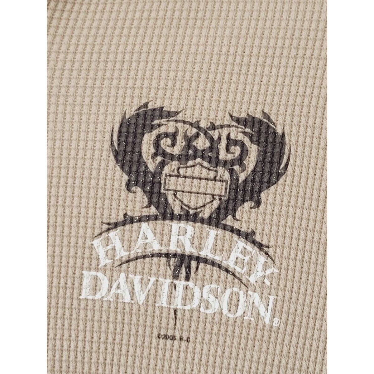 - Harley Davidson Waffle Knit Henley Snap Shirt Womens L Beige USA Vtg Long Sleeve