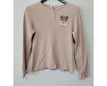 Harley Davidson Waffle Knit Henley Snap Shirt Womens L Beige USA Vtg Long Sleeve