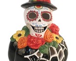 - Harry 20578 Sugar Skull Top Hat Pumpkin Tealight Candle Holder Blue Sky Ceramic