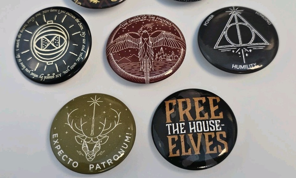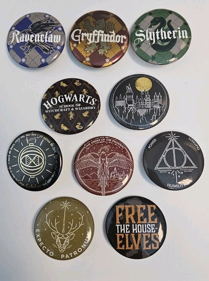 - Harry Potter Badge Buttons House Pins, Spells, Deathly Hallows LOT Of 10