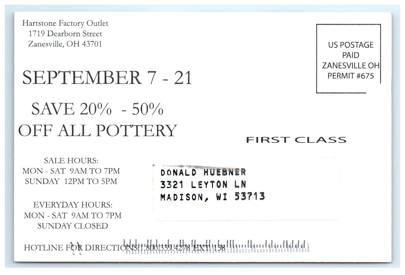 Hartstone Pottery Factory Outlet Zanesville OH Ad Postcard