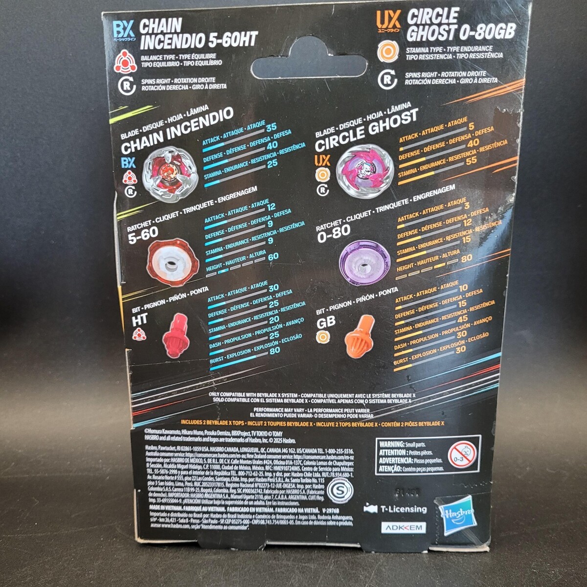 Hasbro Takara Tomy Beyblade X Circle Ghost 0-80GB Chain Incendio 5-60HT Two Pack