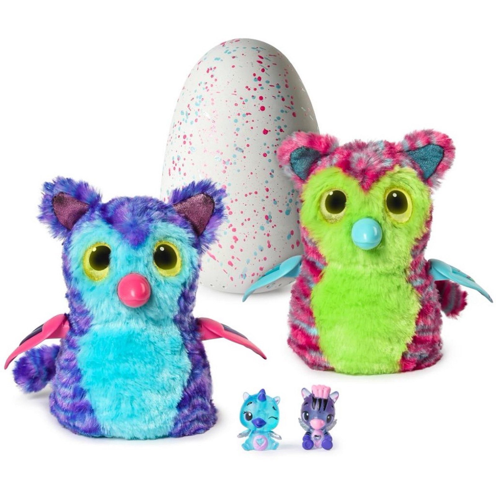 All new Hatchimals from Fabula Forest are here ? and they?re bringing the party! The Hatchimals Fabula Forest with 2 BONUS collEGGtibles Pink/Blue are funky friends come with brand new music and games! Teach Tigrette how to say your name and she?ll repeat it back to you! She?ll even use your name in everyday chat! To meet your furry friend, hold and play with the metallic speckled egg until you see rainbow eyes light up inside! When you hear pecking, it?s hatching time! Your magical Tigrette will peck her way out of the egg ? but only with your help! With funky striped fur and shiny metallic ears, she?s so much fun! Raise her through three stages, from baby to toddler to kid, and unlock new games and tricks along the way! Included in your box are two bonus Season 4 Hatchimals to jumpstart your coll-egg-tion! Press on the egg to crack it and discover which Hatchimal CollEGGtible is inside. Hatchimals ? who will you hatch?
